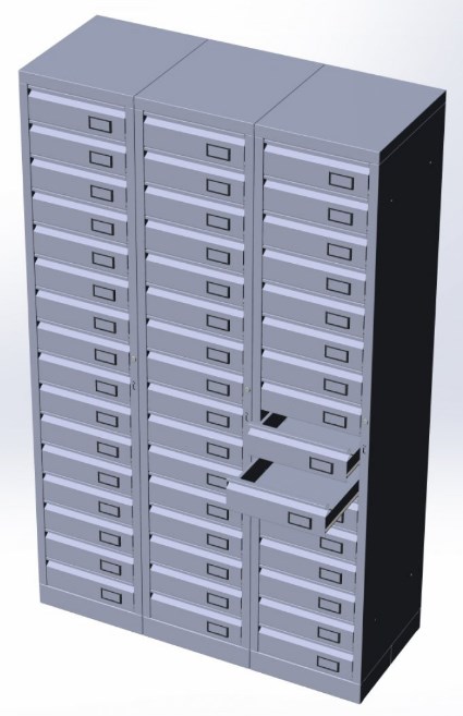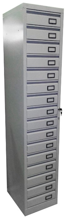 Каждая секция из 16 ящиков имеет свой центральный замок