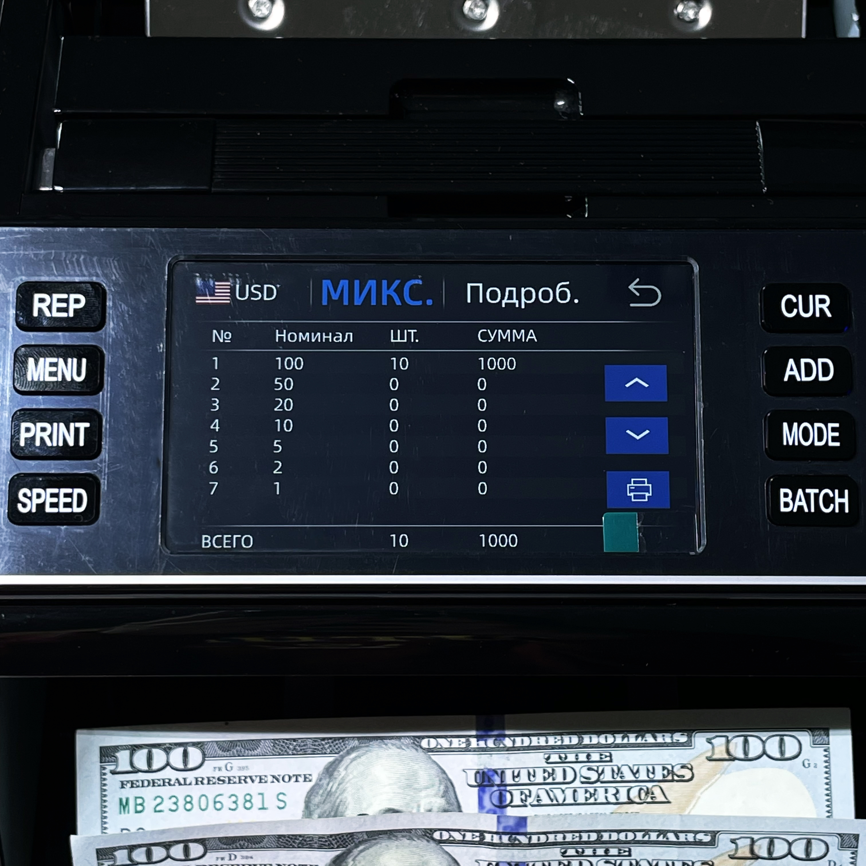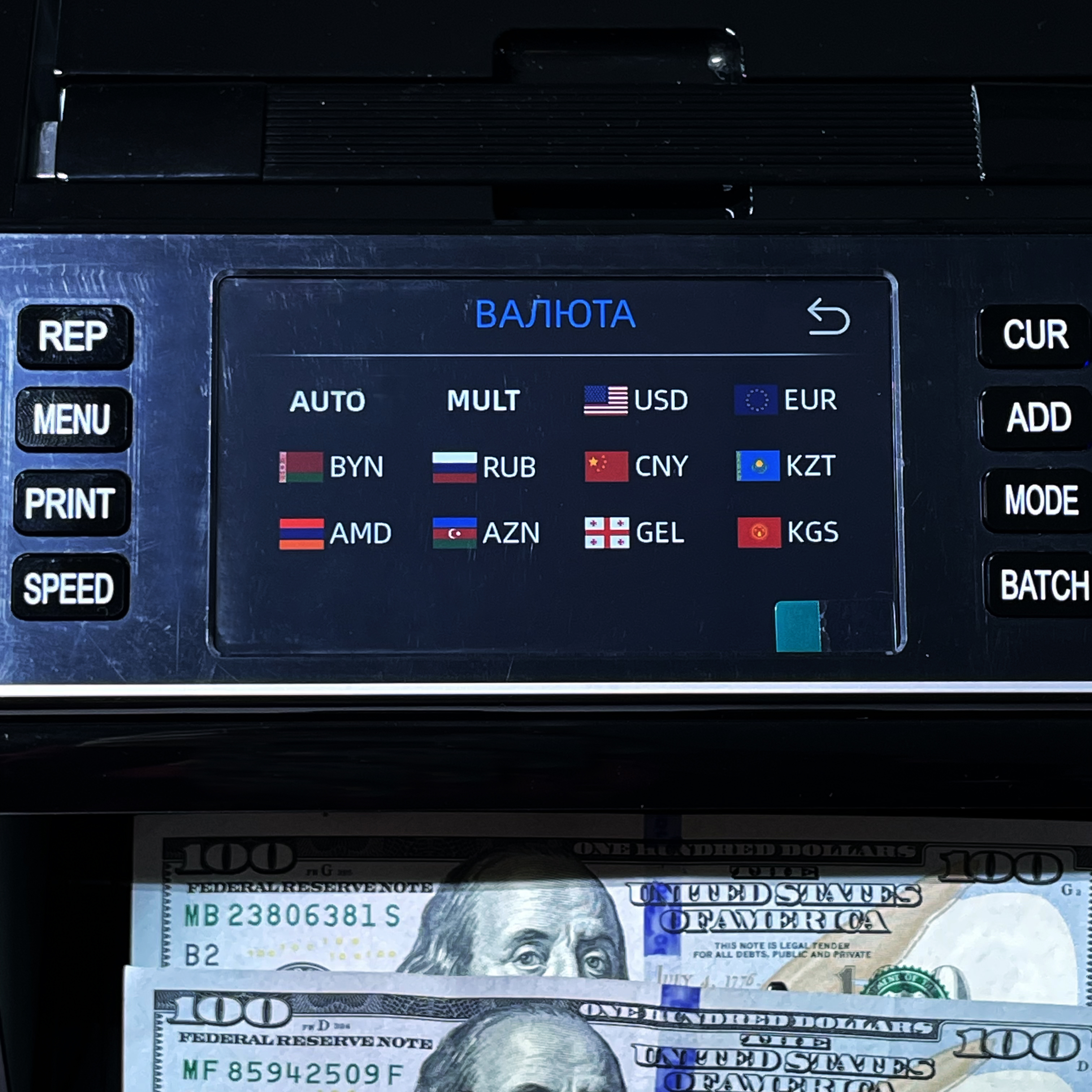 • Скорость счета: 800, 1200, 1500 банкнот/мин (режим CNT)
