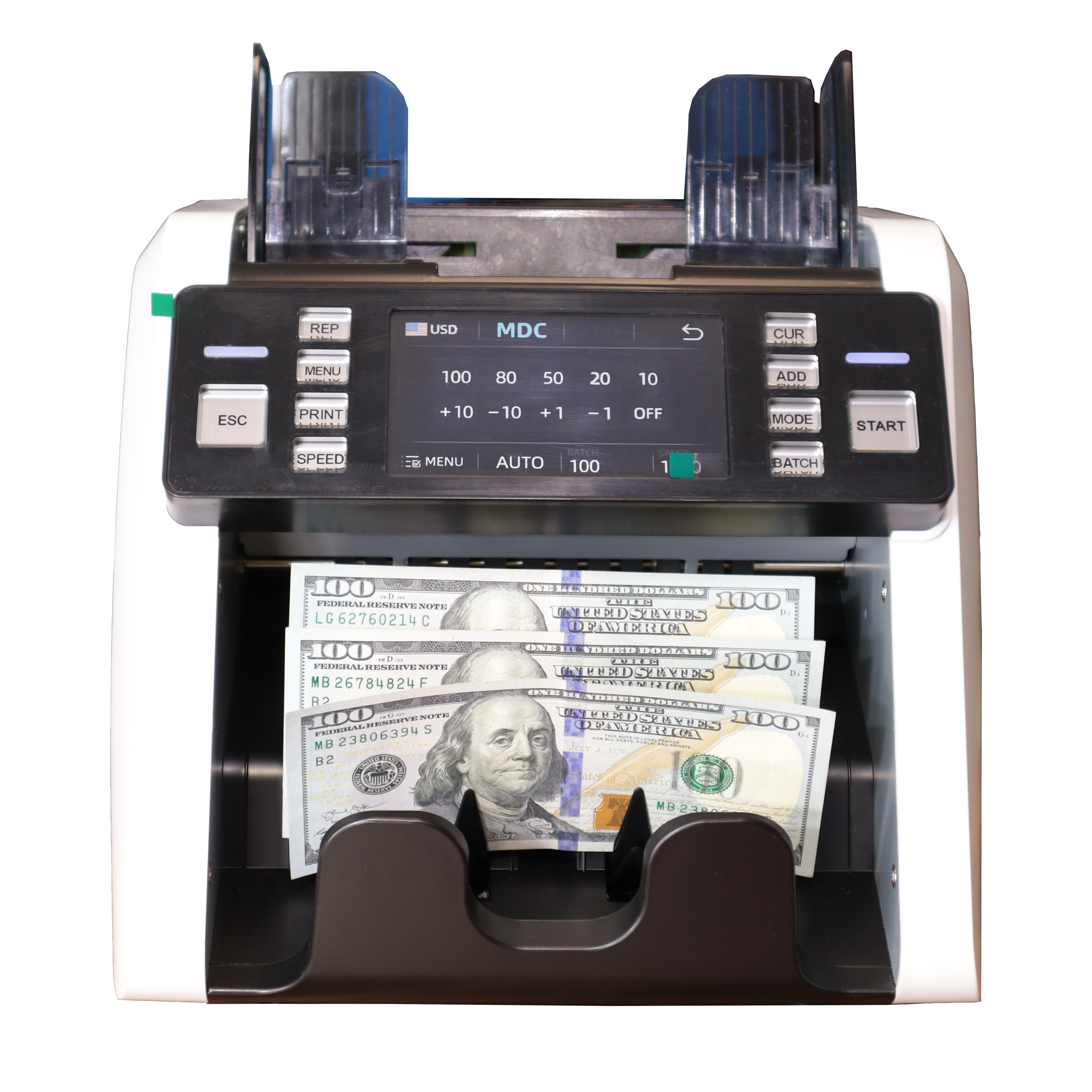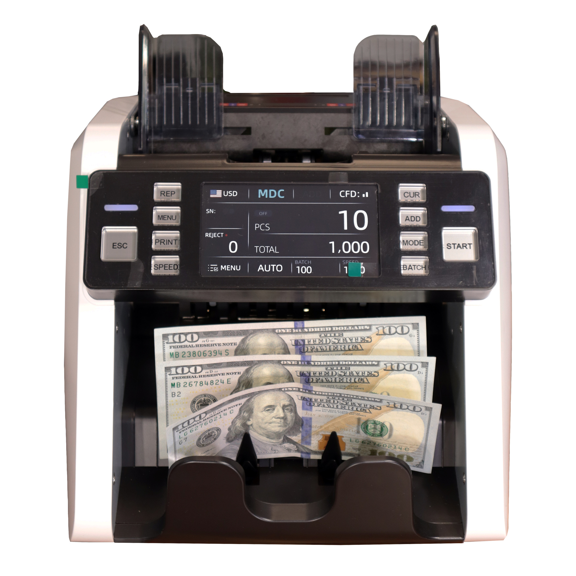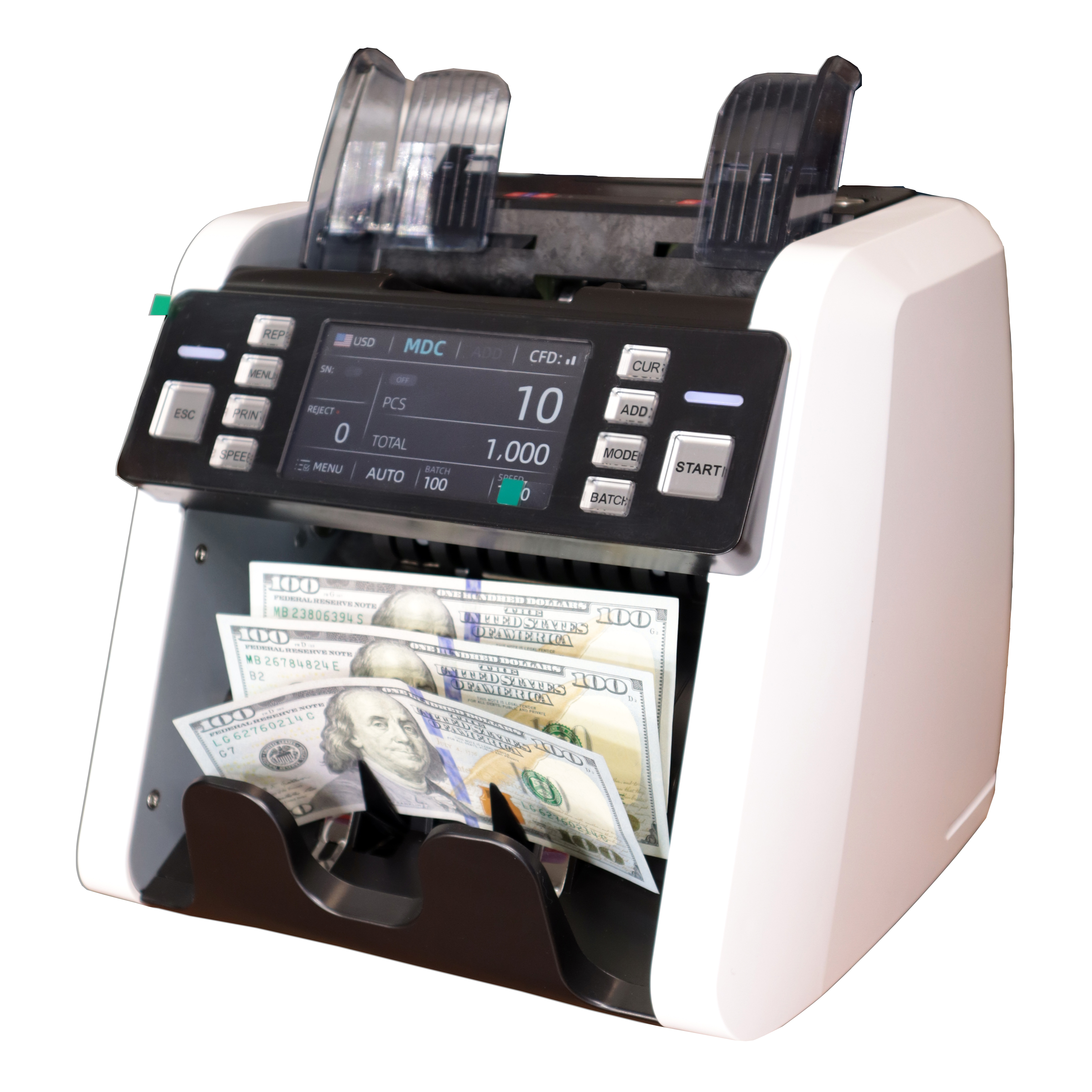 • Скорость счета: 800, 1000, 1200, 1500 банкнот/мин (режим CNT)