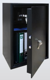 Сейфы серии ОС представляют собой сварную конструкцию, толщина двери — 6 мм, толщина корпуса — 2 мм. Имеется отдельно запираемый на замок Euro-Locks, трейзер, полка, регулируемая по высоте, дверь запирается сейфовым замком Border. Корпус имеет отверстия в задней стенке для крепежа к стене. Цвет: черный (RAL 9005).Гарантия 12 месяцев