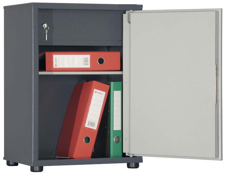 Шкаф офисный односекционный ШМ-62ТМ2 предназначен для хранения бумажных документов. Корпус и дверь шкафа толщиной 1 мм. Шкаф односекционный, оснащен 1 полкой и трейзером. В двери установлен ключевой замок.