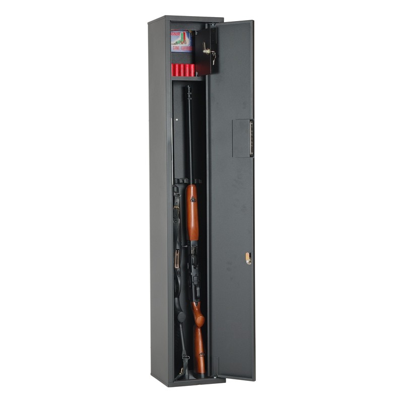 Шкаф на 2 ствола высотой до 1360 мм, оснащен отделением под патроны. Ложементы — пластик. В дверь установлены 1 замок типа «Cam-Lock» и 1 ключевой 8-ми сувальдный замок.