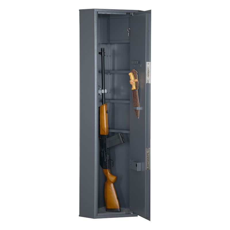 Шкаф оружейный Стрелец-3У на 3 ствола оснащен отделением под патроны.Максимальная высота устанавливаемого оружия — 1350 мм.