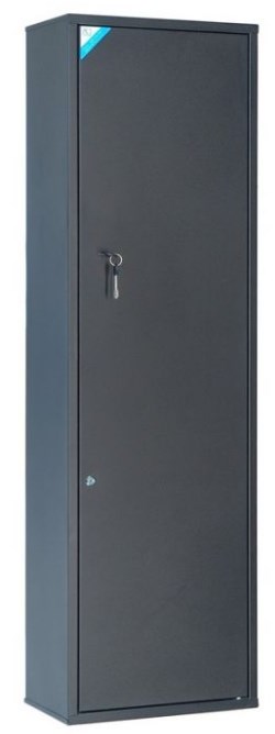 Оружейный шкаф на 5 стволов оснащен отделением под патроны. Ложементы — пластик. В дверь установлены 1 замок типа «Cam-Lock» и 1 ключевой 8-ми сувальдный замок. Шкаф укомплектован трейзером.