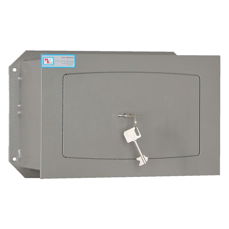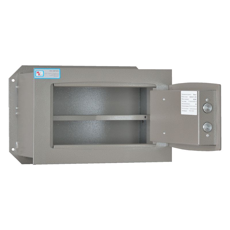 Дверь шкафа оснащена сейфовым замком сувальдного типа. Корпус сейфа толщиной 2 мм, лицевая панель и дверь толщиной 5 мм. На задней стенке корпуса расположены отверстия для крепления. Сейф оснащен съемной полкой.