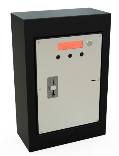 Терминал представляет собой сварной металлический корпус с толщиной стенок 3мм и сейфовым сувальдным замком. На передней панели терминала находится LCD дисплей, кнопки управления, считыватель карт, прорезь приемного канала монетоприемника.