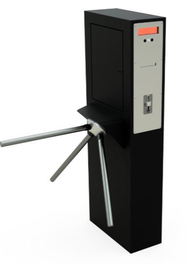 Турникет оборудуется монетоприемником, фискальным регистратором с принтером чеков, LCD дисплеем для информирования и настройки, кнопкой выхода. Сдачу турникет не выдает.