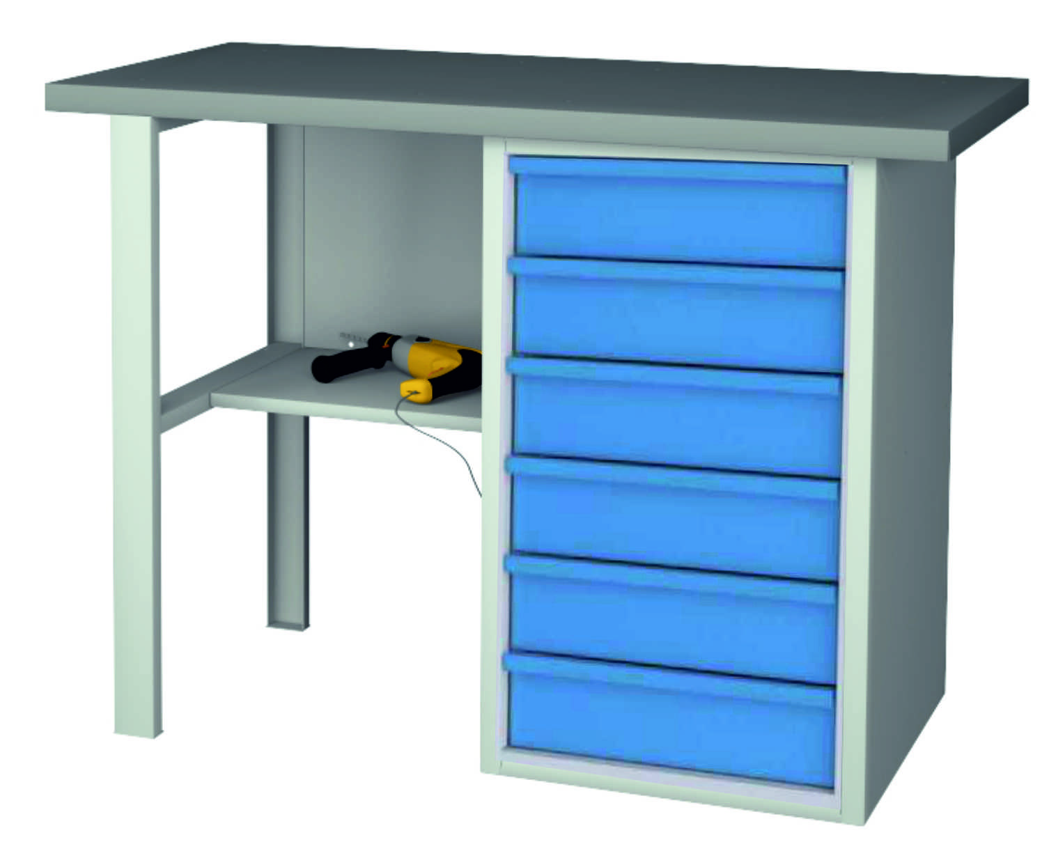 Верстак столярный однотумбовый - надежный и функциональный рабочий стол, состоящий из тумбы, опоры, экрана, столешницы и полки. Прекрасно подходит для организации рабочего пространства. Поставляется в разобранном виде, что облегчает транспортировку. Состоит из тумбы с ячейками, столешницы, опоры и полки. Столешница изготовлена из ДСП толщиной 23 мм + чехол из оцинкованного металла толщиной 1,5 мм.